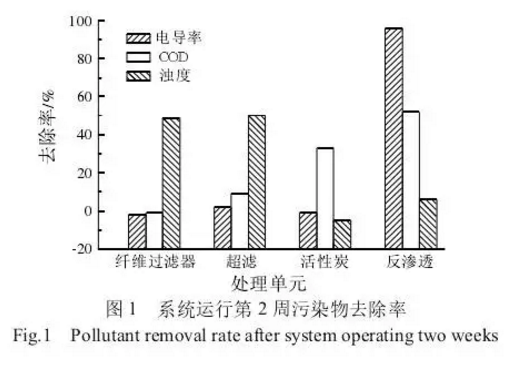 針對(duì)特種紙噸紙耗水量大、中水回用難度高的特點(diǎn),采用纖維過(guò)濾器-超濾-活性炭-反滲透工藝,出水水質(zhì)兼顧了電導(dǎo)率和COD的雙重要求,達(dá)到了系統(tǒng)設(shè)計(jì)的預(yù)期目標(biāo)。出水濁度≤0.5 NTU,電導(dǎo)率≤100μS/cm,總懸浮固形物未檢出,COD≤20mg/L,正常運(yùn)行費(fèi)用2.62元/立方米。出水質(zhì)量滿(mǎn)足特種紙生產(chǎn)的需要,中水回用率達(dá)到80%,紙機(jī)生產(chǎn)和紙制品質(zhì)量不受影響。
