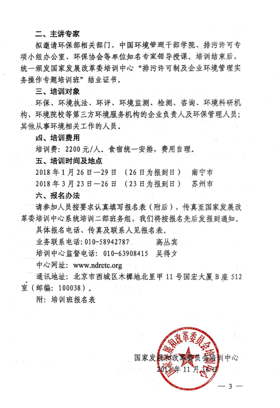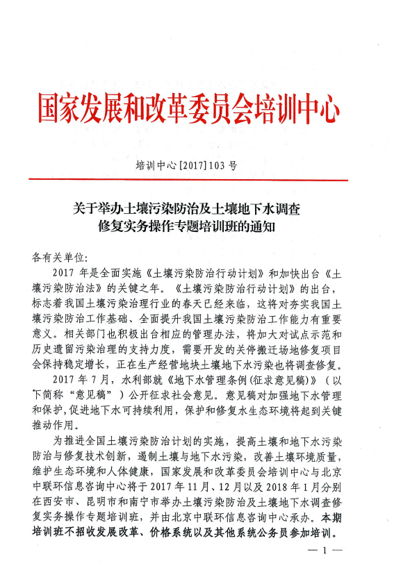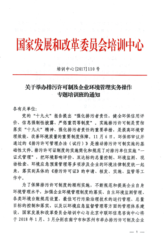 國(guó)家發(fā)改委培訓(xùn)中心主辦:關(guān)于排污許可制+土壤污染防治等專題培訓(xùn)