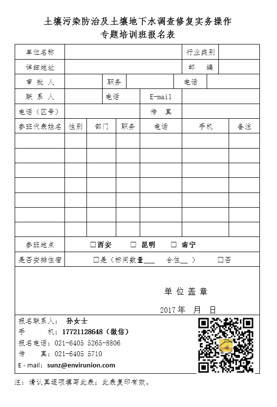 附件:土壤污染防治及土壤地下水調(diào)查修復(fù)實(shí)務(wù)操作專題培訓(xùn)班報(bào)名表
