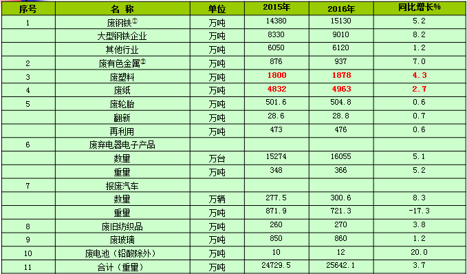 上述報(bào)告中可以看到,2016年,廢塑料回收量1878萬(wàn)噸,廢紙回收4963萬(wàn)噸。徐海云判斷:“如果這部分不統(tǒng)計(jì)進(jìn)去,國(guó)家定的35%的目標(biāo),無(wú)論如何也實(shí)現(xiàn)不了的。但從另一方面看,我們國(guó)家不僅自己回收利用了大量廢品,還進(jìn)口了大量的廢品,如果把進(jìn)口算上的話,回收利用率早就超過(guò)了35%。”