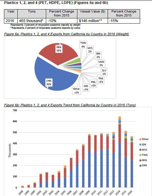 因此,徐海云為中國(guó)的回收再生領(lǐng)域“打抱不平”:“目前,中國(guó)是最大的塑料生產(chǎn)國(guó),也是最大的消費(fèi)國(guó),但人均消費(fèi)量不到發(fā)達(dá)國(guó)家的一半。目前,塑料瓶的回收率,歐盟的數(shù)據(jù)是50%(2015年),美國(guó)是28%(2016年),日本是92%(2015年),中國(guó)沒(méi)有權(quán)威的統(tǒng)計(jì)數(shù)據(jù),但我認(rèn)為一定比他們高。易拉罐方面,歐盟回收率目標(biāo)是73%,提出到2025年達(dá)到75%,但這個(gè)目標(biāo),中國(guó)一定也超過(guò)了?!痹诿绹?guó)加州做的出口到中國(guó)廢塑料統(tǒng)計(jì)中,可以看到中國(guó)廢塑料回收利用情況與其他幾個(gè)國(guó)家的對(duì)比情況:
