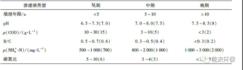 1 垃圾滲濾液的水質(zhì)特點(diǎn)
