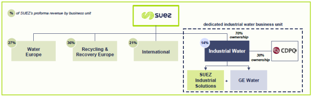 看重了GE水處理在工業(yè)水領(lǐng)域的優(yōu)勢,蘇伊士環(huán)境聯(lián)合加拿大基金公司Caisse de dép?t et placement du Québec (CDPQ)以32億歐元收購了GE的全部股權(quán),兩家將組成合資公司,其中蘇伊士環(huán)境持股70%。Jean-Louis Chaussade先生透露,GE水處理的出售競標(biāo)已經(jīng)進(jìn)行好幾輪了,在第三輪也是最后一輪的對手就剩下了剛剛在去年年底收購了法國家具零售巨頭BUT的美國私募基金 Clayton, Dubilier&Rice。蘇伊士環(huán)境的財(cái)務(wù)主管Christophe Cross則表示收購一旦正式完成后蘇伊士將對其增資7.5億歐元。