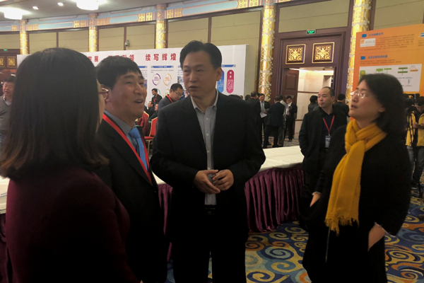 中國建筑材料聯(lián)合會(huì)、水泥協(xié)會(huì)喬龍德會(huì)長(zhǎng)和科技部社會(huì)發(fā)展科技司鄧小明副司長(zhǎng)參觀海螺創(chuàng)業(yè)展板