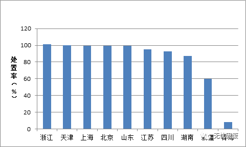 其中,青海處置率最低,僅有8.3%,浙江、天津等地處置率均超過(guò)100%。