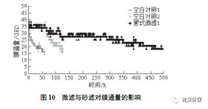 圖11 為震動膜空白和使用兩次微濾預(yù)處理的運行結(jié)果對比。