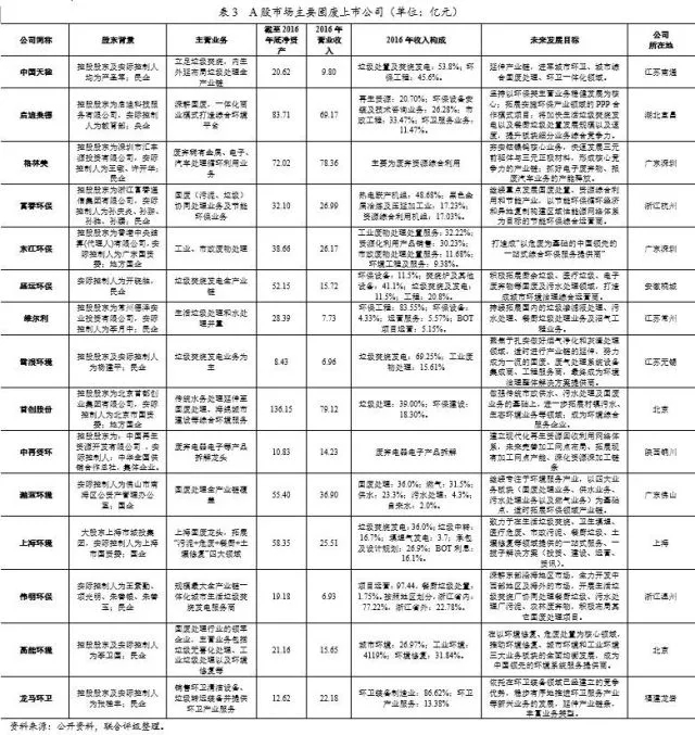 聯(lián)合評(píng)級(jí)對(duì)A股市場從事固廢處理行業(yè)的上市公司進(jìn)行了整理,具體公司情況如下表所示: