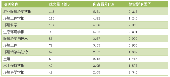 《環(huán)境科學》的影響因子位居TOP10高發(fā)文期刊的榜首——復合影響因子為2.870,載文量以107篇位列第三。該期刊創(chuàng)刊于1976年,是我國環(huán)境科學領域最早創(chuàng)刊的學術性期刊,并在國內外科技界有較大影響,被國內外很多重要檢索系統(tǒng)收錄,如EI、MEDLINE、CSTPCD、維普等。