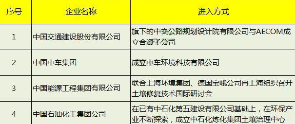 圖表2017年進(jìn)入土壤修復(fù)領(lǐng)域的央企