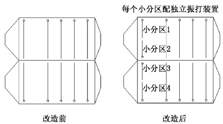 圖3 第一電場(chǎng)陰極系統(tǒng)小分區(qū)改造后示意