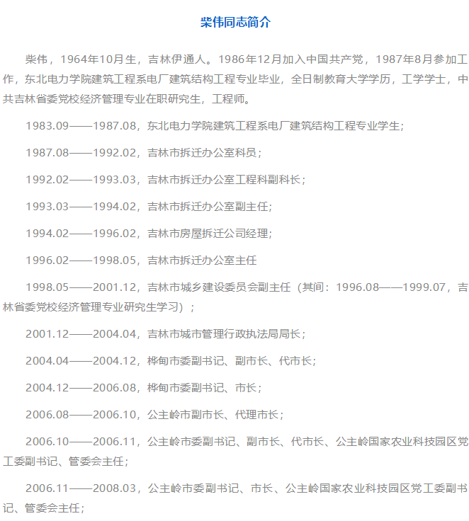 2月9日,吉林省第十三屆人民代表大會常務(wù)委員會第一次會議通過,任命柴偉為吉林省環(huán)境保護(hù)廳廳長。