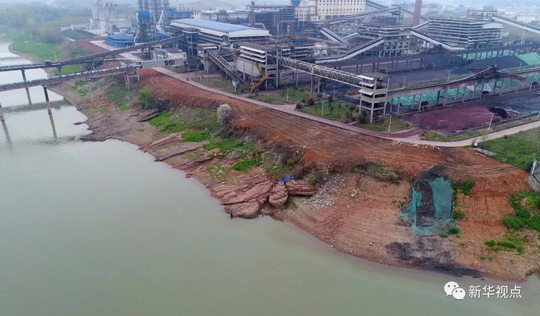 這是3月29日用無(wú)人機(jī)拍攝的安徽貴池前江工業(yè)園內(nèi)池州恒鑫材料科技有限公司廠(chǎng)區(qū)內(nèi)的長(zhǎng)江堤岸旁?xún)A倒的選礦尾渣。新華社記者 郭晨 攝