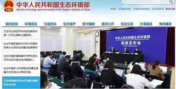 2018年4月3日,生態(tài)環(huán)境部官網(wǎng)截圖