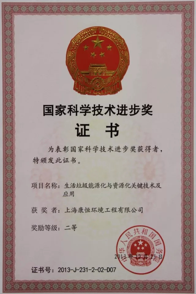 康恒環(huán)境是上海市高新技術企業(yè),已獲授權50余項國家專利,垃圾焚燒技術被評為國家科技進步二等獎、教育部科技進步一等獎等多項獎;擁有電力行業(yè)(新能源發(fā)電專業(yè))乙級、環(huán)境工程設計專項(污染修復工程)乙級、環(huán)保工程專業(yè)承包二級工程資質,已通過ISO9001、ISO14001和OHSAS18001體系認證;榮獲國家工商總局守合同重信用企業(yè)、上海市專利試點企業(yè)、上海市優(yōu)秀高新技術企業(yè)、創(chuàng)新型企業(yè)等榮譽稱號。