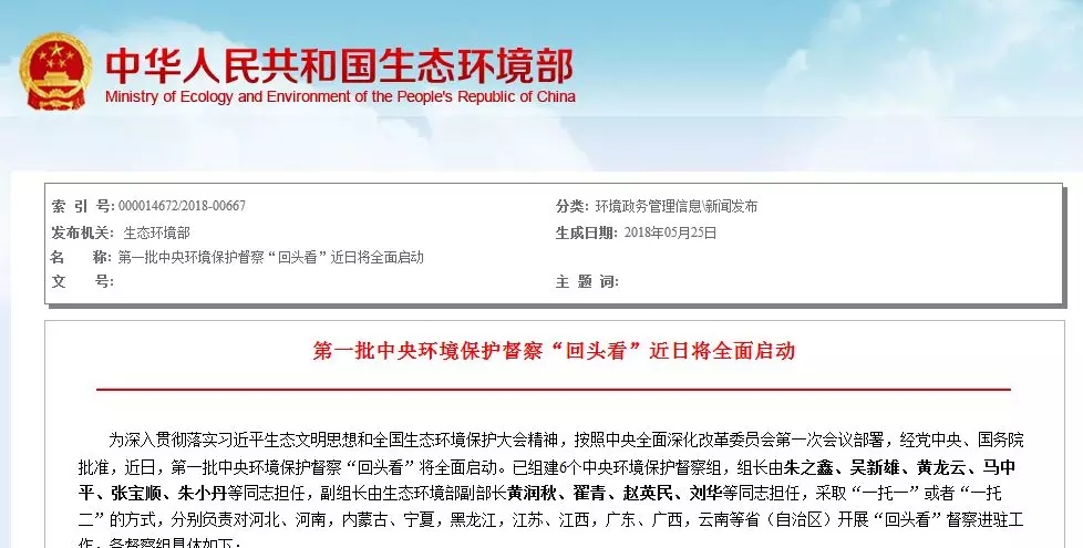 為深入貫徹落實習(xí)近平生態(tài)文明思想和全國生態(tài)環(huán)境保護大會精神,按照中央全面深化改革委員會第一次會議部署,經(jīng)黨中央、國務(wù)院批準,近日,第一批中央環(huán)境保護督察“回頭看”將全面啟動。