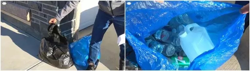 馬克家的垃圾桶,左邊是不可回收物,右邊是可回收物