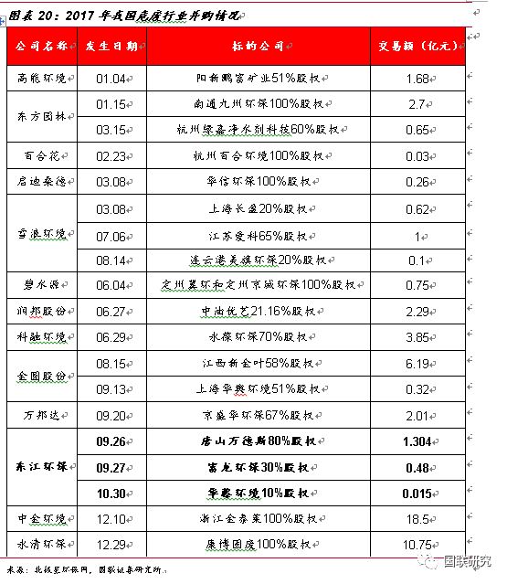 行業(yè)并購熱度高,進(jìn)入群雄逐鹿時代。在過去的2017年,我國危廢行業(yè)兼并購市場火爆,整個環(huán)保產(chǎn)業(yè)共發(fā)生86起并購,交易金額達(dá)385億元,交易金額與數(shù)量均創(chuàng)新高,其中涉及到危廢的并購市場達(dá)20余起。