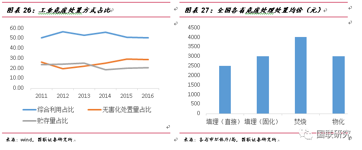 綜合兩種測算方法,我們認(rèn)為2016年我國危廢實際產(chǎn)生量將在1.07-1.24億噸左右,低位值1.07億噸,遠(yuǎn)高于生態(tài)環(huán)境部統(tǒng)計值。