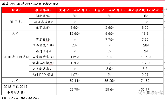 大量項目即將落地投產(chǎn),危廢處理能力持續(xù)增強(qiáng)。根據(jù)公司2017年年報披露數(shù)據(jù),2017年公司共建成項目有湖北天銀(無害化3萬噸/年,資源化3萬噸/年)、珠海永興盛(無害化1萬噸/年)、東莞恒建(無害化2.65萬噸/年、資源化9.65萬噸/年),2017年新增總產(chǎn)能達(dá)19.3萬噸/年。2018年預(yù)計能夠投產(chǎn)的項目包括衡水睿稻(無害化7.75萬噸/年)、江西固廢二期(資源化28萬噸/年)、福建南平(無害化2萬噸/年)、山東濰坊東江(無害化1.59萬噸/年,資源化18萬噸/年)、湖北仙桃綠怡(資源化1.78萬噸/年)、江蘇南通(無害化3.5萬噸/年)、泉州PPP項目(無害化5萬噸/年、資源化4.07萬噸/年),2018年預(yù)計總產(chǎn)能達(dá)71.69萬噸/年。