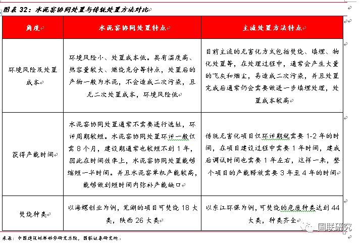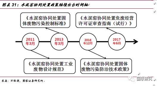 水泥窯協(xié)同處置—危廢無害化處置的有益補(bǔ)充。政策刺激下,水泥窯協(xié)同處置危廢應(yīng)運而生。2011年3月,《水泥窯協(xié)同處置工業(yè)廢物設(shè)計規(guī)范》正式出臺,文件對工業(yè)廢物處置規(guī)模、技術(shù)等進(jìn)行了詳細(xì)要求,標(biāo)志著對水泥窯協(xié)同處置政策成熟化的開端。2013年兩高司法提出非法排放、傾倒、處理3噸以上的危廢入刑,從法律層面上對危廢的排放進(jìn)行了強(qiáng)有力的監(jiān)管,同年3月,《水泥窯協(xié)同處置固體廢物污染控制標(biāo)準(zhǔn)》出臺,規(guī)定了污染排放限值、水泥窯設(shè)施技術(shù)要求以及入窯廢物的特性要求,作為水泥窯協(xié)同處置領(lǐng)域規(guī)范性文件推動了行業(yè)的持續(xù)發(fā)展。2016年12月,《水泥窯協(xié)同處置固體廢物污染防治技術(shù)政策》出臺,文中明確了協(xié)同處置固廢應(yīng)利用現(xiàn)有新型干法水泥窯,采用窯磨一體化的運行方式進(jìn)行運作,政策發(fā)布之后,新建、改建或擴(kuò)建處置危險廢物的水泥企業(yè),應(yīng)按照要求選擇單線設(shè)計熟料生產(chǎn)規(guī)模 4000噸/日及以上水泥窯。2017年6月,《水泥窯協(xié)同處置危廢經(jīng)營許可證審查指南(試行)》出臺,對水泥窯協(xié)同處置危廢的適用范圍、術(shù)語定義、經(jīng)營模式及技術(shù)規(guī)范等方面進(jìn)行了詳細(xì)規(guī)定,并將協(xié)同處置的新型干法水泥窯熟料產(chǎn)能的標(biāo)準(zhǔn)重新進(jìn)行了修訂,由之前4000噸/日調(diào)整下降到2000噸/日,進(jìn)一步擴(kuò)大了產(chǎn)能空間。