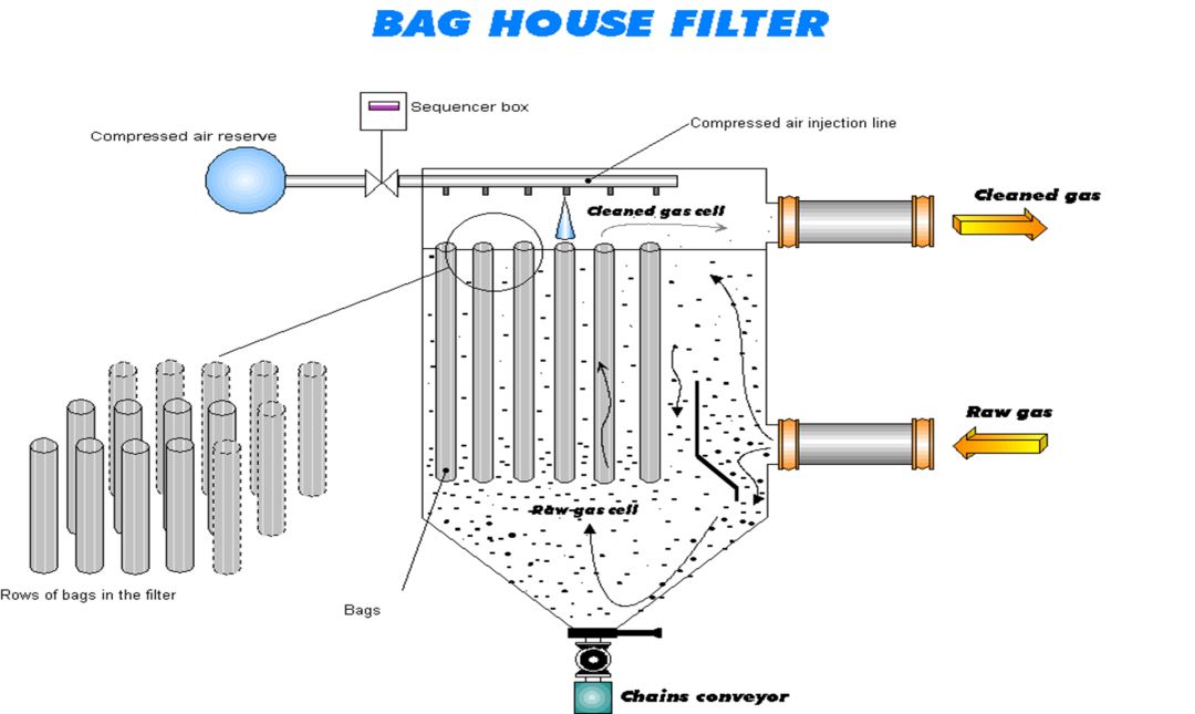 布袋除塵器型式為下進氣、外濾袋、脈沖噴吹清灰;