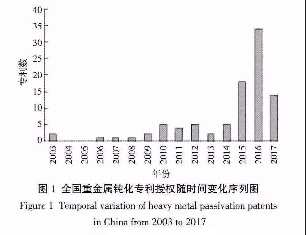 采用文獻(xiàn)計量學(xué)方法全面系統(tǒng)地回顧和總結(jié)已有技術(shù)成果的現(xiàn)狀、特點和趨勢,可以為更深入開展重金屬鈍化技術(shù)的研究工作提供參考和依據(jù)。本文以可檢索到的重金屬鈍化技術(shù)發(fā)明專利文獻(xiàn)為樣本,對專利的時空分布、研究機構(gòu)、研究方法和應(yīng)用領(lǐng)域,以及鈍化劑的特點、適用范圍和應(yīng)用效果等進(jìn)行文獻(xiàn)計量分析和總結(jié),研究成果為重金屬鈍化技術(shù)的選擇與應(yīng)用提供了參考。