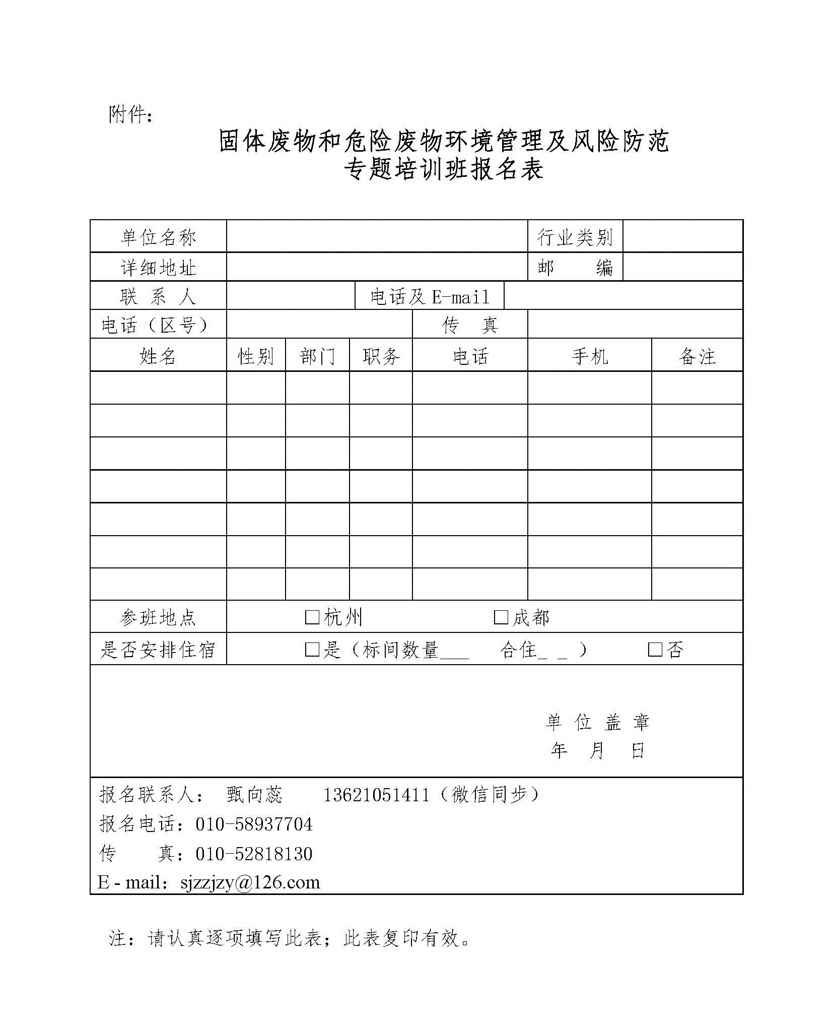 附件:固體廢物和危險(xiǎn)廢物環(huán)境管理及風(fēng)險(xiǎn)防范 專題培訓(xùn)班報(bào)名表