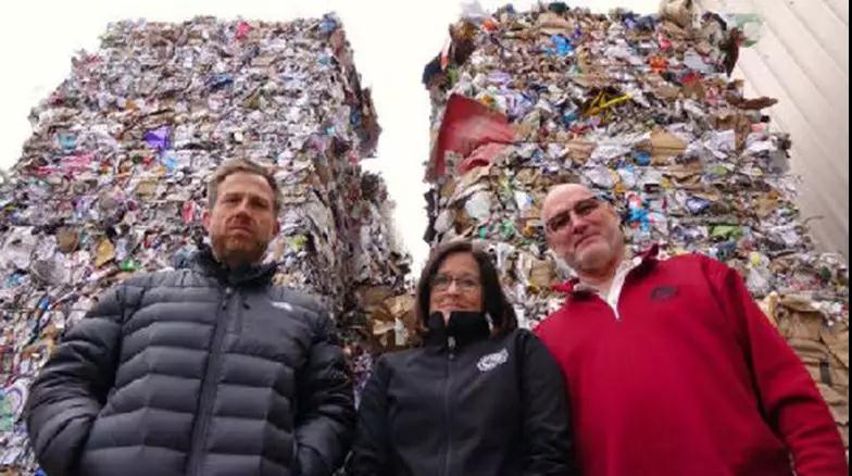 三名俄勒岡州回收站的工作人員面對成山的垃圾無所適從