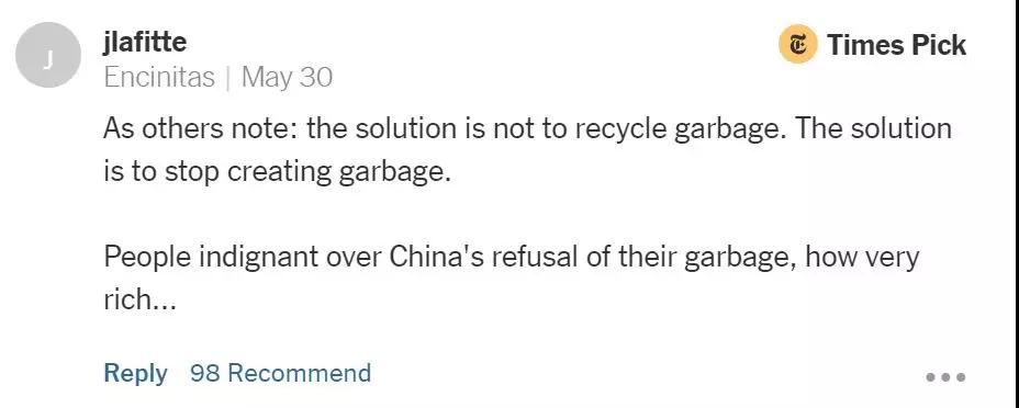 “像其他人說的那樣,解決問題的方法不是去回收,而應該去停止制造垃圾。”