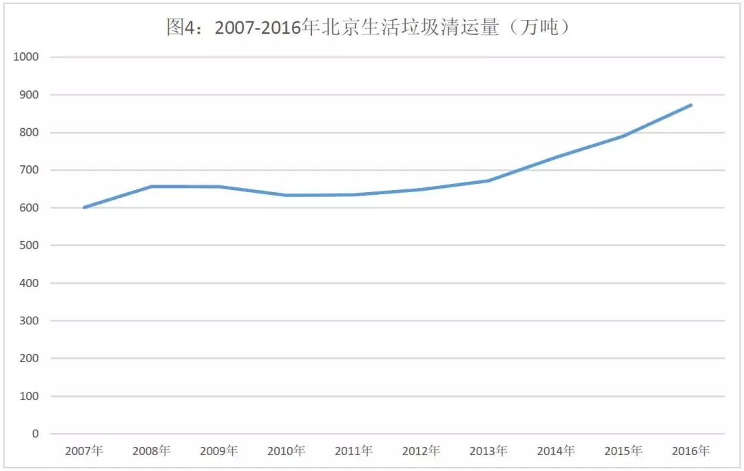 以北京為例,2007-2016年十年間,生活垃圾清運量增長了45%,同期人口數(shù)量增長29.7%,遠低于垃圾清運量的增長。可見,北京市居民最能“掙錢”,同時產(chǎn)生垃圾的能力在不斷的“增強”。