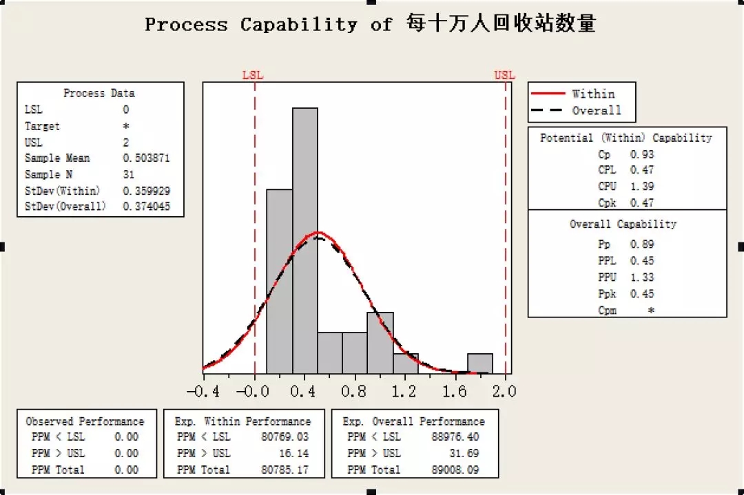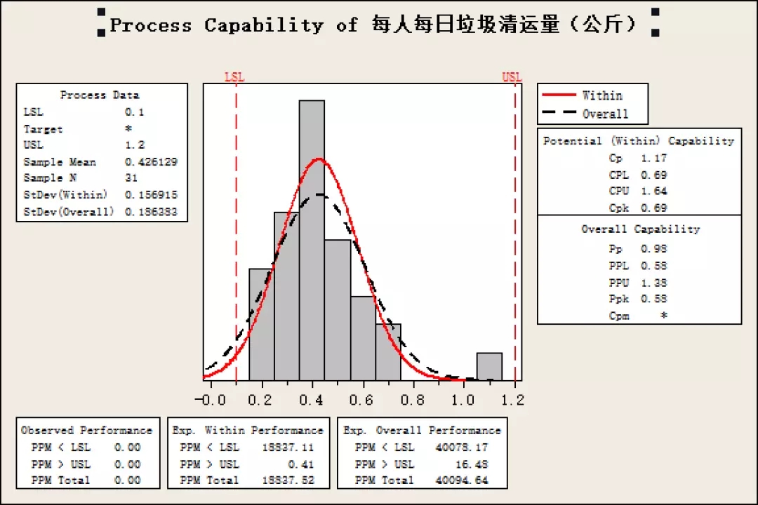根據(jù)對每日垃圾清運量數(shù)據(jù)的直方圖以及正態(tài)分布圖,可以看出,全國各大省市的每日人均垃圾清運量基本符合正態(tài)分布,其中大部分省市的人均每日清運量在0.2-0.6公斤之間,平均值為0.42公斤。