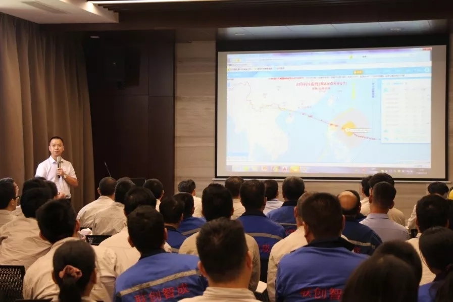 9月15日廠區(qū)防臺措施、物資準備全面落實,公司員工安頓好家人后迅速回到工作崗位,團結一致,抵抗“山竹”。防臺應急指揮部到現(xiàn)場逐一復查防臺措施及物資準備到位情況,確保臺風期間人身和設備安全。
