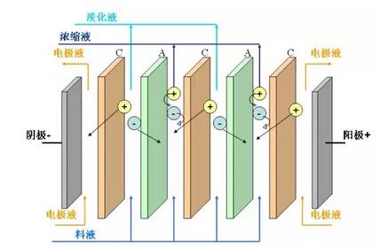 電滲析技術(shù)是膜分離技術(shù)的一種,它是在直流電場(chǎng)的作用下,以電位差為推動(dòng)力,利用離子交換膜的選擇透過性,把電解質(zhì)從溶液中分離出來,從而實(shí)現(xiàn)溶液的淡化、精制或純化目的。