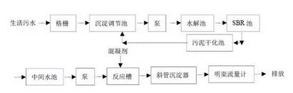 當(dāng)單一的處理方法處理效果不理想時(shí),為了達(dá)到污水排放的標(biāo)準(zhǔn),可以使用多種方法聯(lián)合的方式。最常見的是物理-化學(xué)處理法,其基本工藝如下: