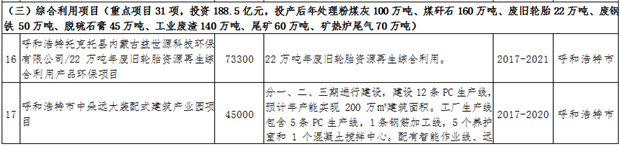 資源綜合利用。積極爭取國家在內(nèi)蒙古布局高鋁粉煤灰提取氧化鋁項目,擴(kuò)大產(chǎn)業(yè)化規(guī)模,降低氧化鋁進(jìn)口比例。利用粉煤灰、煤矸石、礦渣生產(chǎn)水泥、新型墻材、土壤改良劑、復(fù)合肥等,到2020年,煤矸石、粉煤灰等大宗工業(yè)固廢綜合利用率達(dá)到45%。推進(jìn)工業(yè)園區(qū)高濃度難降解工業(yè)廢水、重金屬廢水、城鎮(zhèn)污水綜合利用。支持包頭建設(shè)國家“城市礦產(chǎn)”示范基地,發(fā)展報廢汽車、廢舊電子電器等資源再利用產(chǎn)業(yè)。