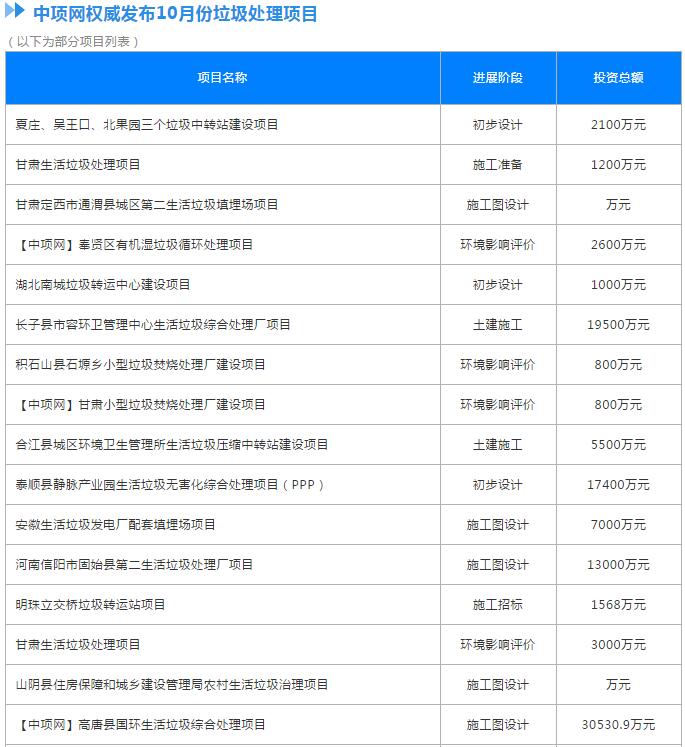 原標(biāo)題:10月份全國(guó)擬在建垃圾處理項(xiàng)目