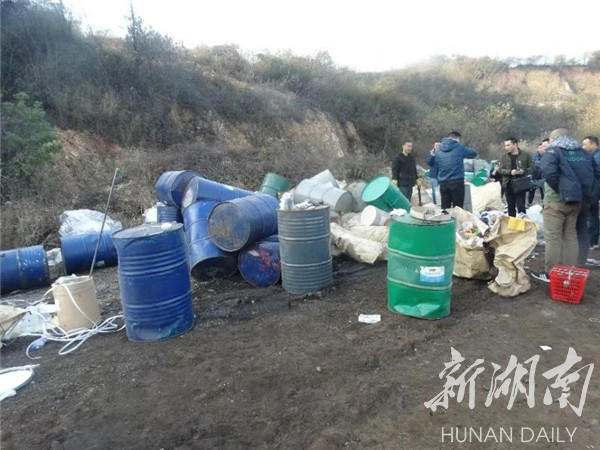 2017年12月20日,根據(jù)群眾舉報,在位于湘潭市雨湖區(qū)鶴嶺鎮(zhèn)原湘潭錳礦紅旗礦區(qū)荒山(俗稱“鬼坳里”)發(fā)現(xiàn)三處地方隨意堆放著大量鐵桶裝工業(yè)廢物,堆放位置無任何防滲防漏和遮蓋措施,部分鐵桶已出現(xiàn)破裂或銹蝕,其中的油狀、膠狀物質(zhì)發(fā)生泄漏,已對當?shù)厣鷳B(tài)環(huán)境造成嚴重污染。
