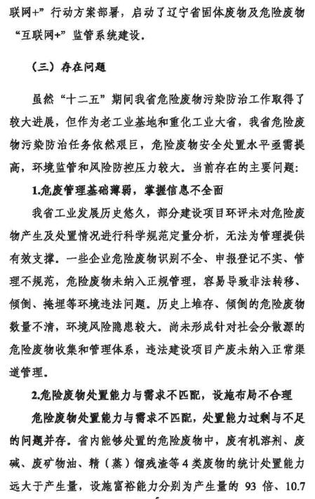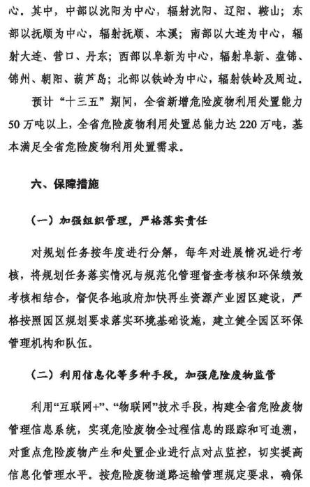 日前,遼寧環(huán)保廳公布了《遼寧省“十三五”危險(xiǎn)廢物污染防治規(guī)劃》,預(yù)計(jì)“十三五”期間危險(xiǎn)廢物利用處置設(shè)施建設(shè)資金投入達(dá)20億元以上,全省新增危險(xiǎn)廢物處置能力50萬(wàn)噸以上,全省危險(xiǎn)廢物利用處置總能力達(dá)220萬(wàn)噸,基本滿足全省危險(xiǎn)廢物利用處置需求。