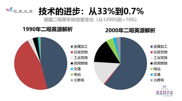 1990年到2000年間德國二噁英的源解析給我們提供了證據(jù):在1990年,全德國一年產(chǎn)生大概1200克的二噁英,其中來自垃圾焚燒的大概占33%。隨著技術(shù)的進(jìn)步和標(biāo)準(zhǔn)的提高,到2000年整個(gè)德國二噁英的排放量下降到低于70克,其中來自于垃圾焚燒裝置的排放只占了大概0.7%,這是一個(gè)非常低的比例。