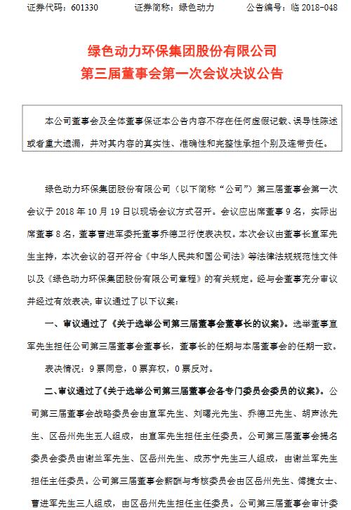 原標(biāo)題:綠色動(dòng)力環(huán)保(01330)選舉直軍擔(dān)任公司董事長(zhǎng)