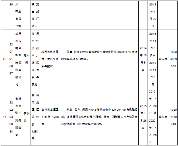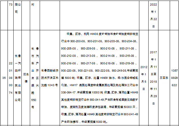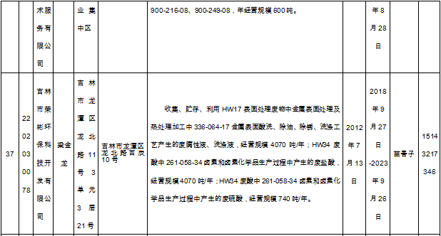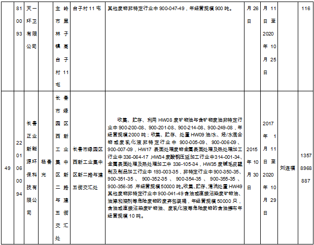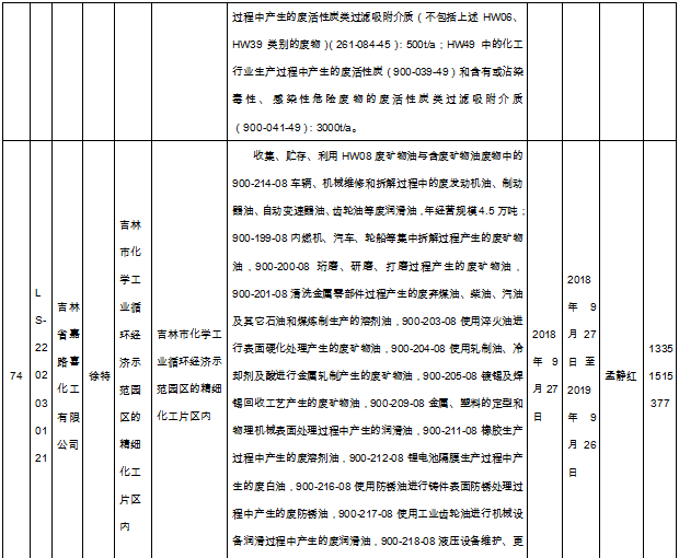 北極星固廢網(wǎng)獲悉嗎,日前吉林省環(huán)保廳發(fā)布了《吉林省危險廢物經(jīng)營許可證持證企業(yè)名單(2018年9月更新)》,共涉及74家企業(yè),且附有聯(lián)系方式。具體內容如下: