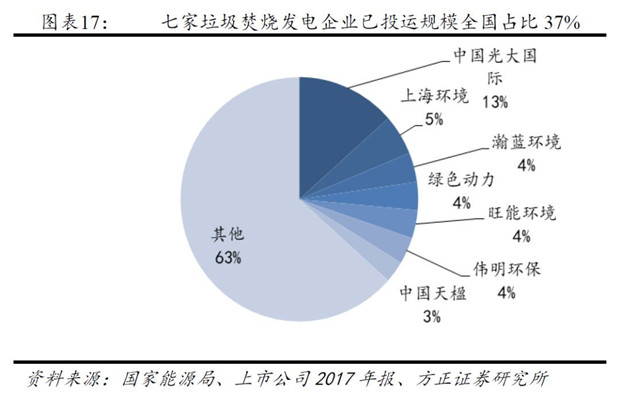從上市公司已投運(yùn)的垃圾焚燒發(fā)電項(xiàng)目來看,截止2017年底,七家垃圾焚燒發(fā)電企業(yè)已投運(yùn)規(guī)模合計(jì)10.62萬噸/日,占全國已投運(yùn)項(xiàng)目的37%。