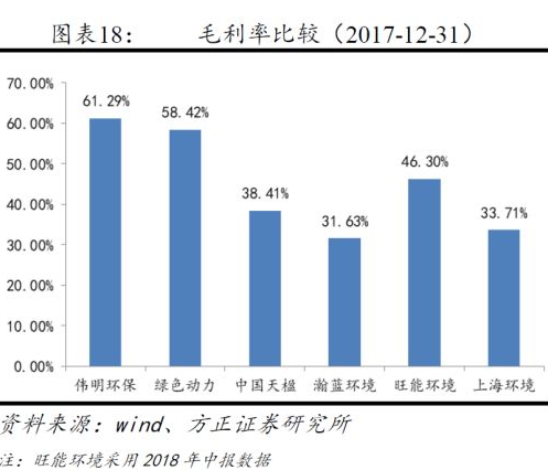 我們選取了垃圾焚燒發(fā)電、水務(wù)運(yùn)營、水務(wù)工程、環(huán)衛(wèi)、大氣和監(jiān)測6個(gè)細(xì)分領(lǐng)域內(nèi)的代表性上市公司,通過這些上市公司的2017年年報(bào)財(cái)務(wù)數(shù)據(jù)計(jì)算細(xì)分行業(yè)指標(biāo)進(jìn)行比較。