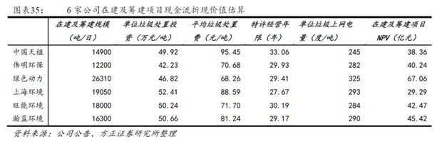 根據(jù)目前在手訂單信息統(tǒng)計(jì),我們對于7家公司在建及籌建項(xiàng)目的NPV進(jìn)行估算:
