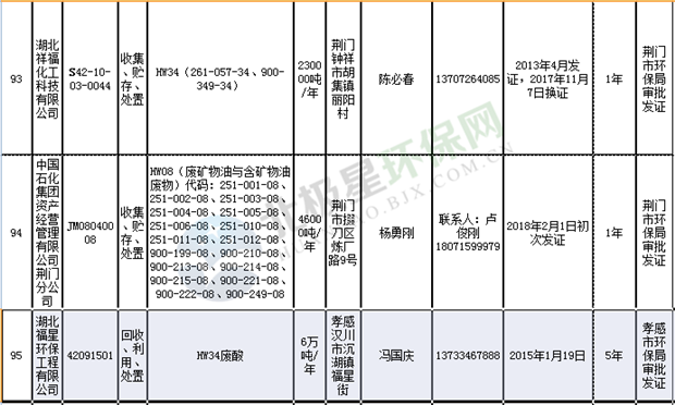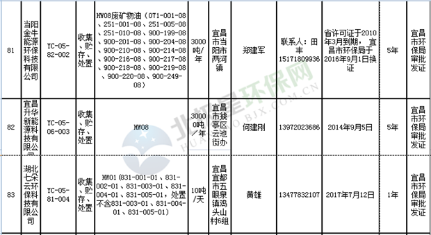 日前湖北省環(huán)保廳發(fā)布了《湖北省危險(xiǎn)廢物經(jīng)營許可證》單位名錄(截至2018年10月12日,共108家),且附有聯(lián)系電話,具體內(nèi)容如下: