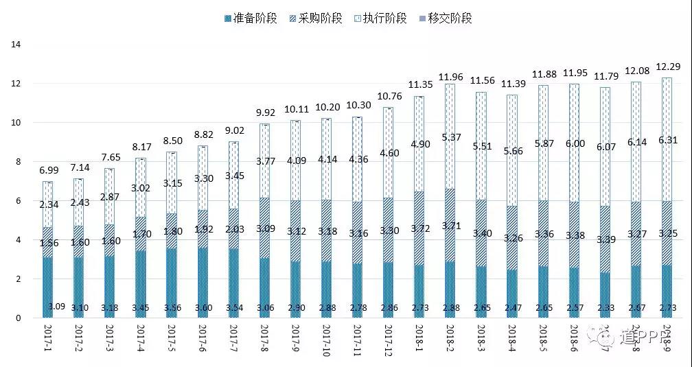 按照《關(guān)于規(guī)范政府和社會(huì)資本合作綜合信息平臺(tái)運(yùn)行的通知》(財(cái)金〔2015〕166號(hào))要求,建立了全國(guó)政府和社會(huì)資本合作(PPP)綜合信息平臺(tái)及項(xiàng)目管理庫(kù)。PPP項(xiàng)目按全生命周期分為識(shí)別、準(zhǔn)備、采購(gòu)、執(zhí)行和移交5個(gè)階段,其中,準(zhǔn)備、采購(gòu)、執(zhí)行和移交4個(gè)階段的項(xiàng)目納入管理庫(kù)。截至2018年三季度,綜合信息平臺(tái)項(xiàng)目管理庫(kù)情況如下: