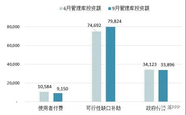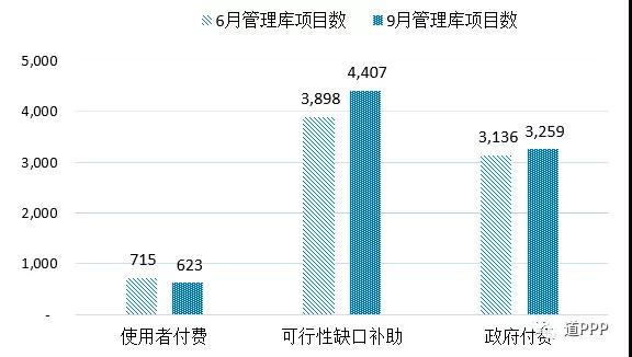 億元,分別占管理庫(kù)的43.5%和50.5%。京津冀累計(jì)項(xiàng)目總數(shù)423個(gè)、投資額7,822億元,分別占管理庫(kù)的5.1%和6.4%;累計(jì)落地項(xiàng)目總數(shù)216個(gè)、投資額4,763億元,分別占管理庫(kù)落地項(xiàng)目的5.3%和7.5%?;貓?bào)機(jī)制方面,三季度使用者付費(fèi)類項(xiàng)目?jī)魷p項(xiàng)目92個(gè)、投資額1,435億元;可行性缺口補(bǔ)助類項(xiàng)目新增項(xiàng)目509個(gè)、投資額5,132億元;政府付費(fèi)類項(xiàng)目新增123個(gè),投資額凈減227億元。管理庫(kù)累計(jì)使用者付費(fèi)類項(xiàng)目623個(gè)、投資額9,150億元;累計(jì)可行性缺口補(bǔ)助(即政府市場(chǎng)混合付費(fèi))類項(xiàng)目4,407個(gè)、投資額8.0萬(wàn)億元;累計(jì)政府付費(fèi)類項(xiàng)目3,259個(gè)、投資額3.4萬(wàn)億元。