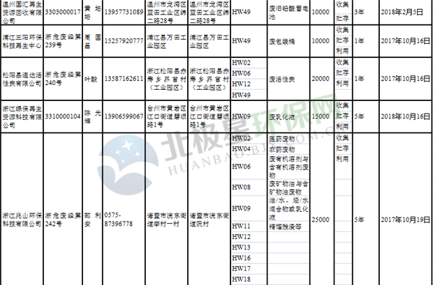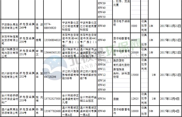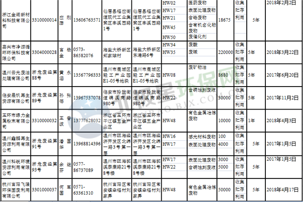 日前浙江省生態(tài)環(huán)境廳發(fā)布了《浙江省危險廢物經(jīng)營單位名單(2018年10月26日更新)》,涉及企業(yè)255家,并附有聯(lián)系電話。具體內(nèi)容如下: