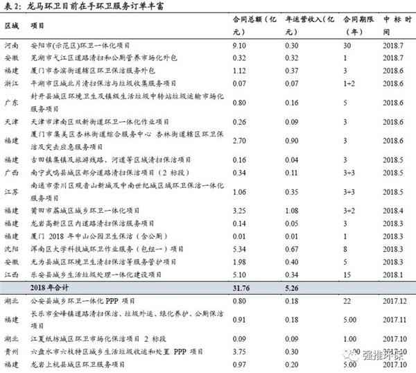 環(huán)衛(wèi)服務(wù)快速發(fā)展,在手訂單充足。公司從2015年開始開拓環(huán)衛(wèi)服務(wù)業(yè)務(wù),中標(biāo)??邶埲A區(qū)及沈陽(yáng)渾南區(qū)項(xiàng)目標(biāo)志公司具備全國(guó)拓展環(huán)衛(wèi)服務(wù)業(yè)務(wù)的能力。截至目前,公司在手環(huán)衛(wèi)服務(wù)項(xiàng)目年化合同金額為14.80億元,合同總金額為140.83億元,充足的在手訂單是未來業(yè)績(jī)高增長(zhǎng)的有力保障。