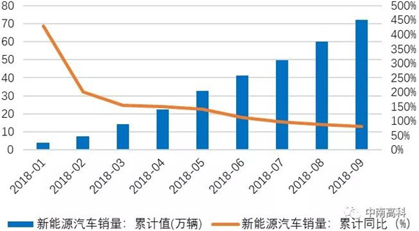 圖3:2018年新能源汽車月累計(jì)銷量及累計(jì)同比增速